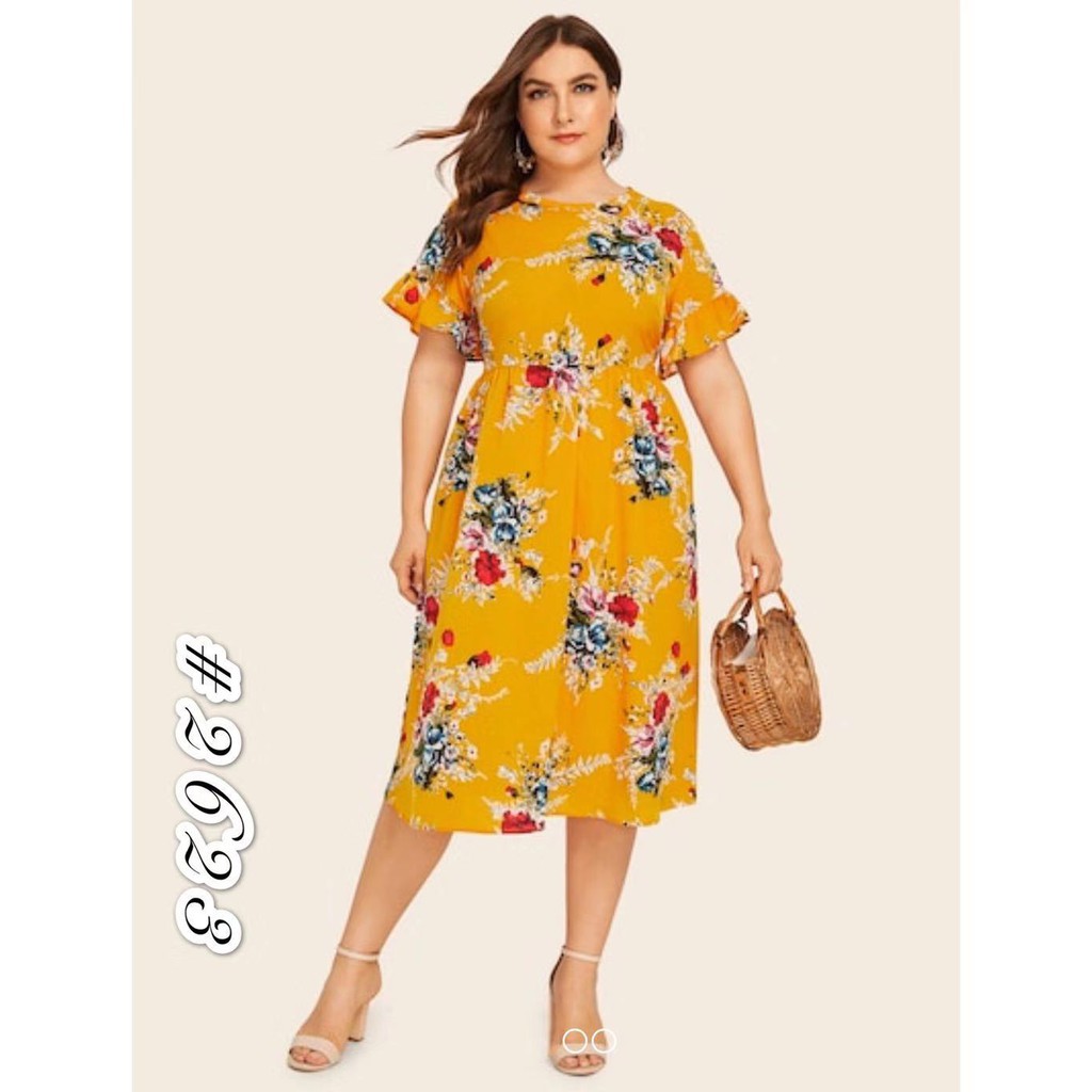 New Trendy Plus Size Floral Yellow Raffle Sleeve Below Knee Formal Dress Shopee Philippines
